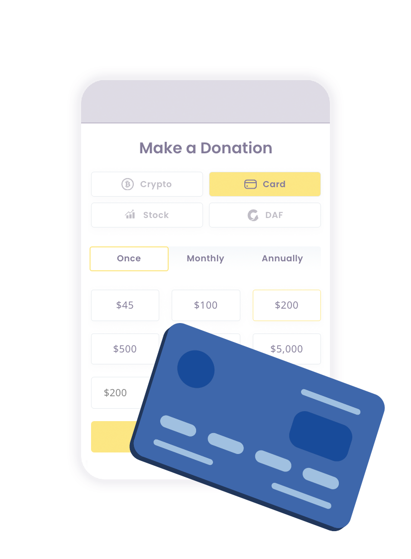 Choose from thousands of nonprofits you can support with crypto, stock and more.